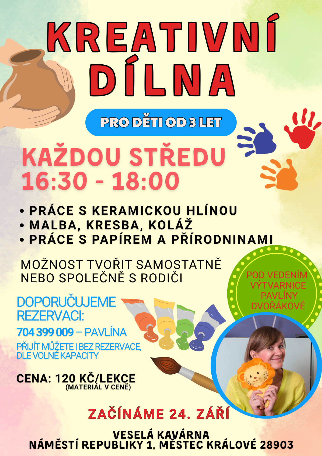 Kreativní dílna ve Veselé kavárně je prostor pro klidné tvoření, společně strávený čas a rozvoj dětské fantazie.