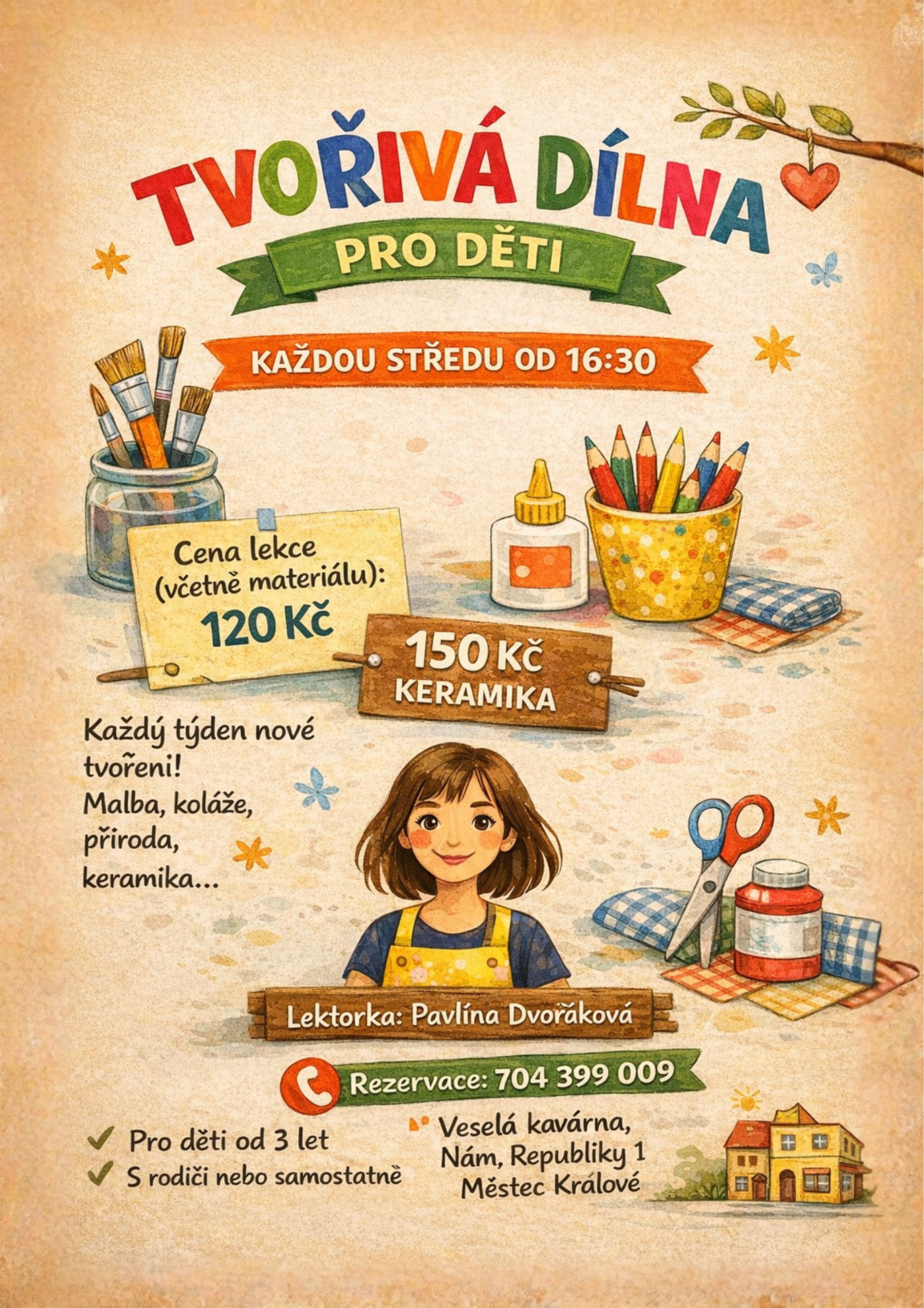 Tvořivá dílna ve Veselé kavárně je prostor pro klidné tvoření, společně strávený čas a rozvoj dětské fantazie.